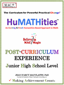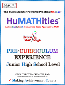 An Exciting & Fresh Humanities-Based Approach to Mathematics (HuMATHities) is an organic common-core-aligned project that has had a fifteen-year gestation period. Over its evolution, MAC students (grade 6 - graduate level) have had a direct say in its ongoing development and appearance on virtually every level. We have all happily put the time and effort in to help you to readily play with and enjoy these pivotal math skills. However long it takes you—as a teacher, a tutor, a group or an individual—to move through these lively pages, y o u will have spent those hours well.