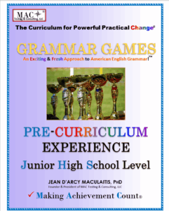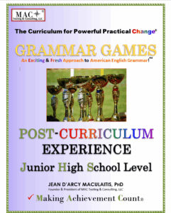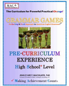 An exciting and fresh approach to American English Grammar at the High School level. This formal yet functional style of Academic English is based on common situational topics. The questions challenge students to think and choose the best answers in real-life scenarios. Generally, this material set is used before the introduction of the Grammar Games curriculum set. A comprehensive answer key is also provided.Post-Curriculum – Jr. HS & HS